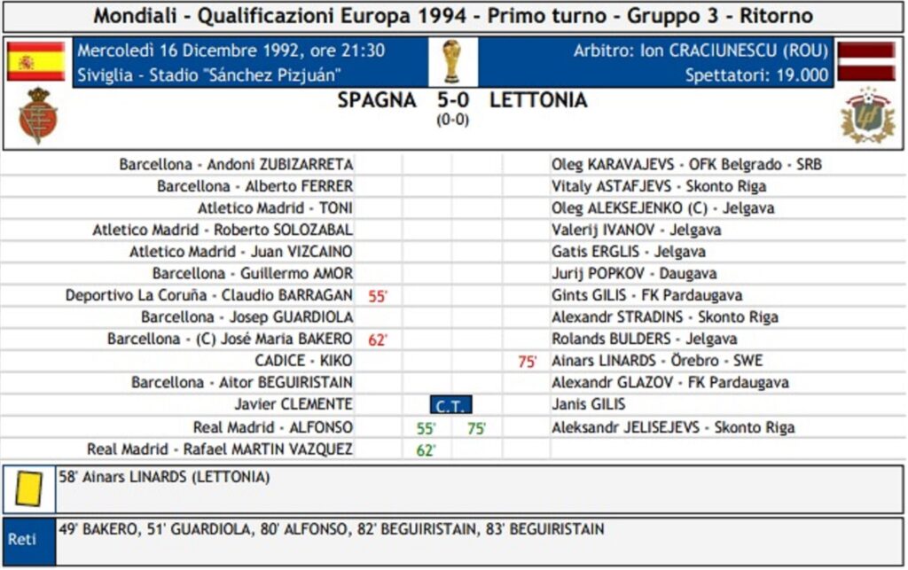 I baltici muovono i loro primi timidi passi dopo la dissoluzione dell’Unione Sovietica. Sono modesti ed inesperti, ma han saputo pareggiare con la Danimarca e con la stessa Spagna tre mesi prima, a Riga, in casa.