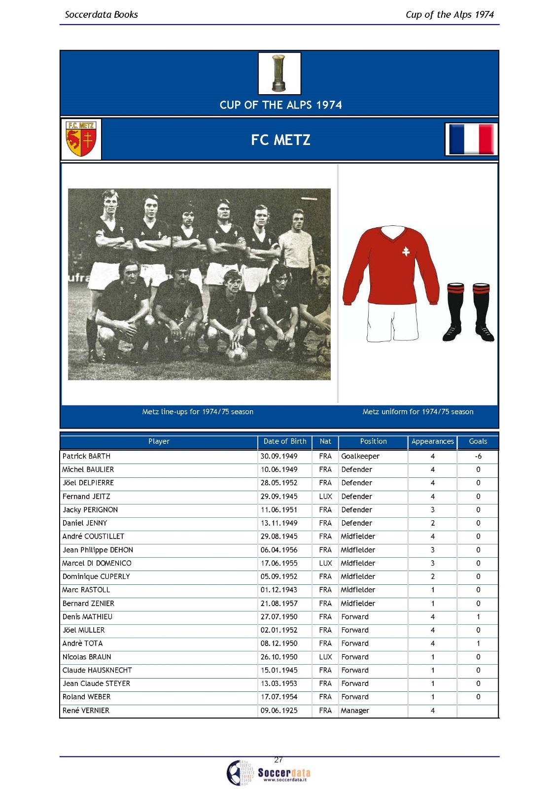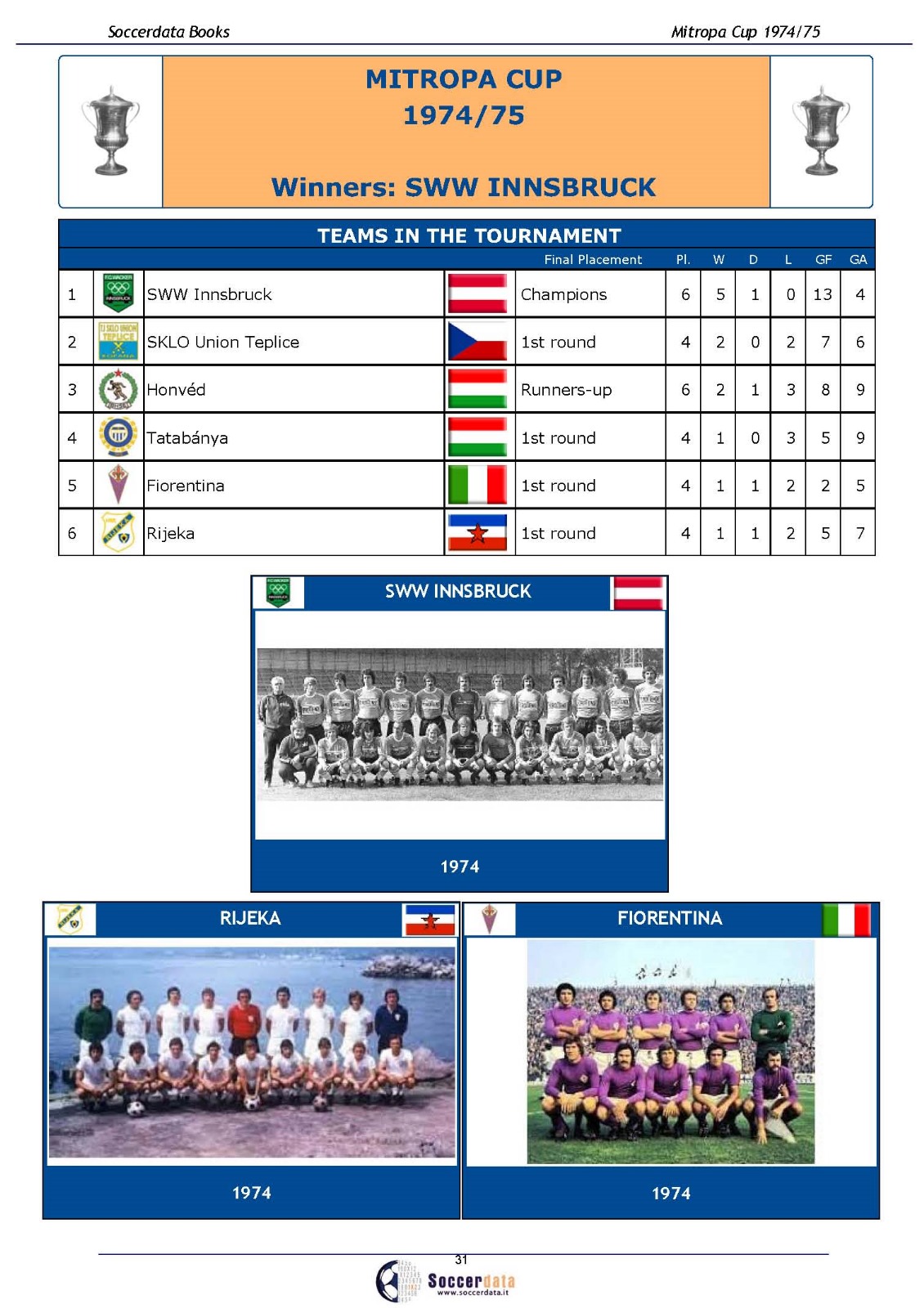Risultati,Classifiche,Formazioni e statistiche complete delle squadre e dei giocatori coinvolti nelle Coppe Europee dal 1974 al 1975