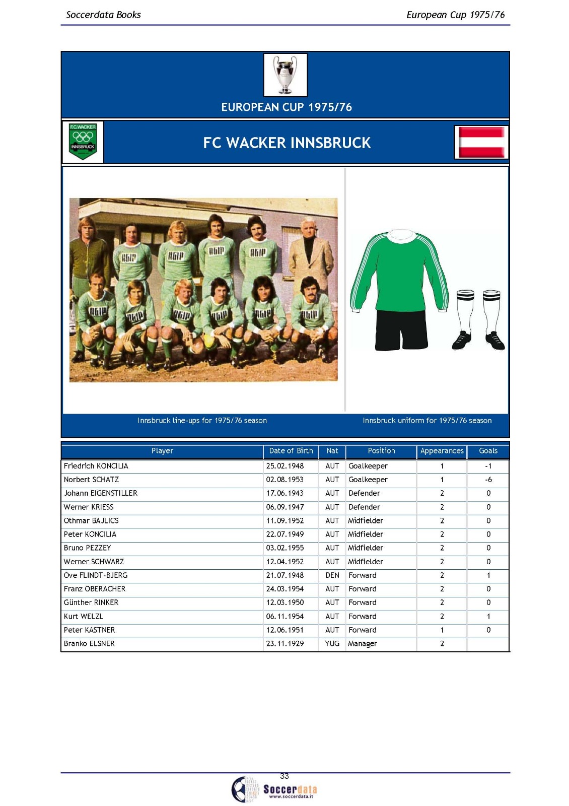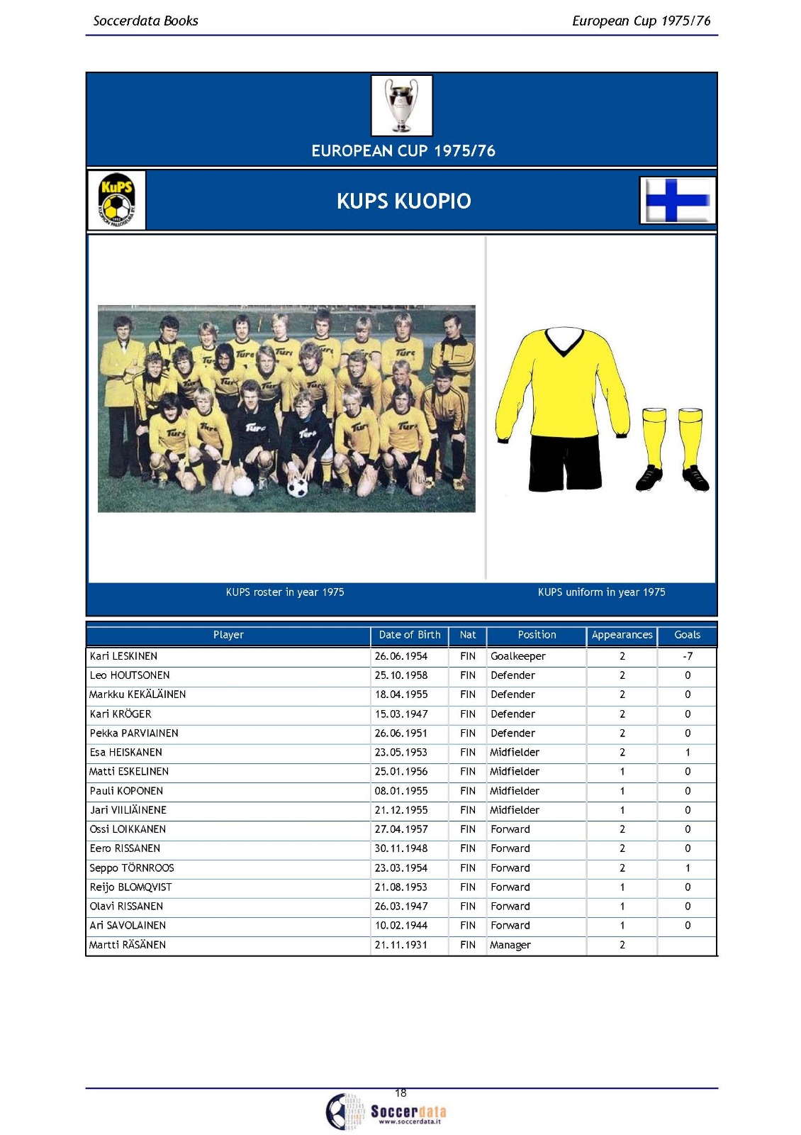 Full line-ups and stats of teams and players involved in Eurocups from 1975 up to 1976