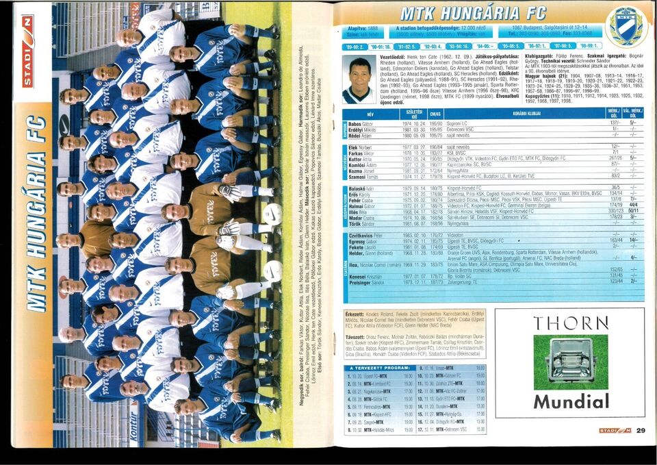Guida di presentazione al campionato ungherese 1999/2000.