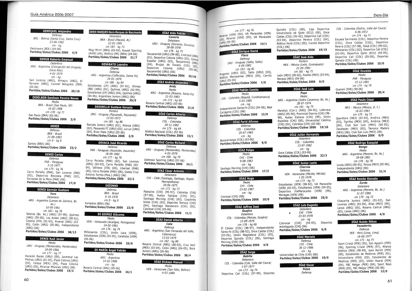 Le carriere di circa 6.000 calciatori partecipanti ai campionati di Prima divisione di Argentina, Bolivia, Brasile, Cile, Colombia, Ecuador, Messico, Paraguay, Perù, Stati Uniti, Uruguay e Venezuela. Una montagna di numeri.
