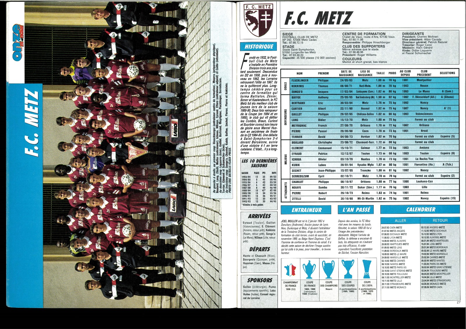 Guida di presentazione al campionato francese stagione 1993/94