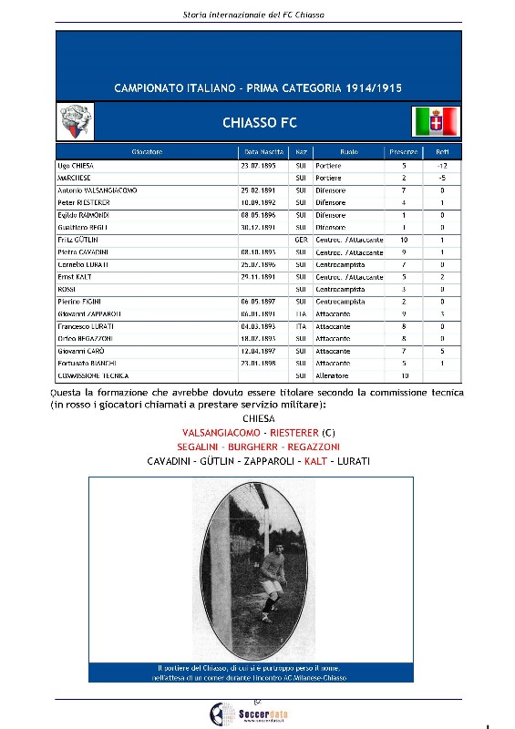 STORIA INTERNAZIONALE DEL FC CHIASSO 1905