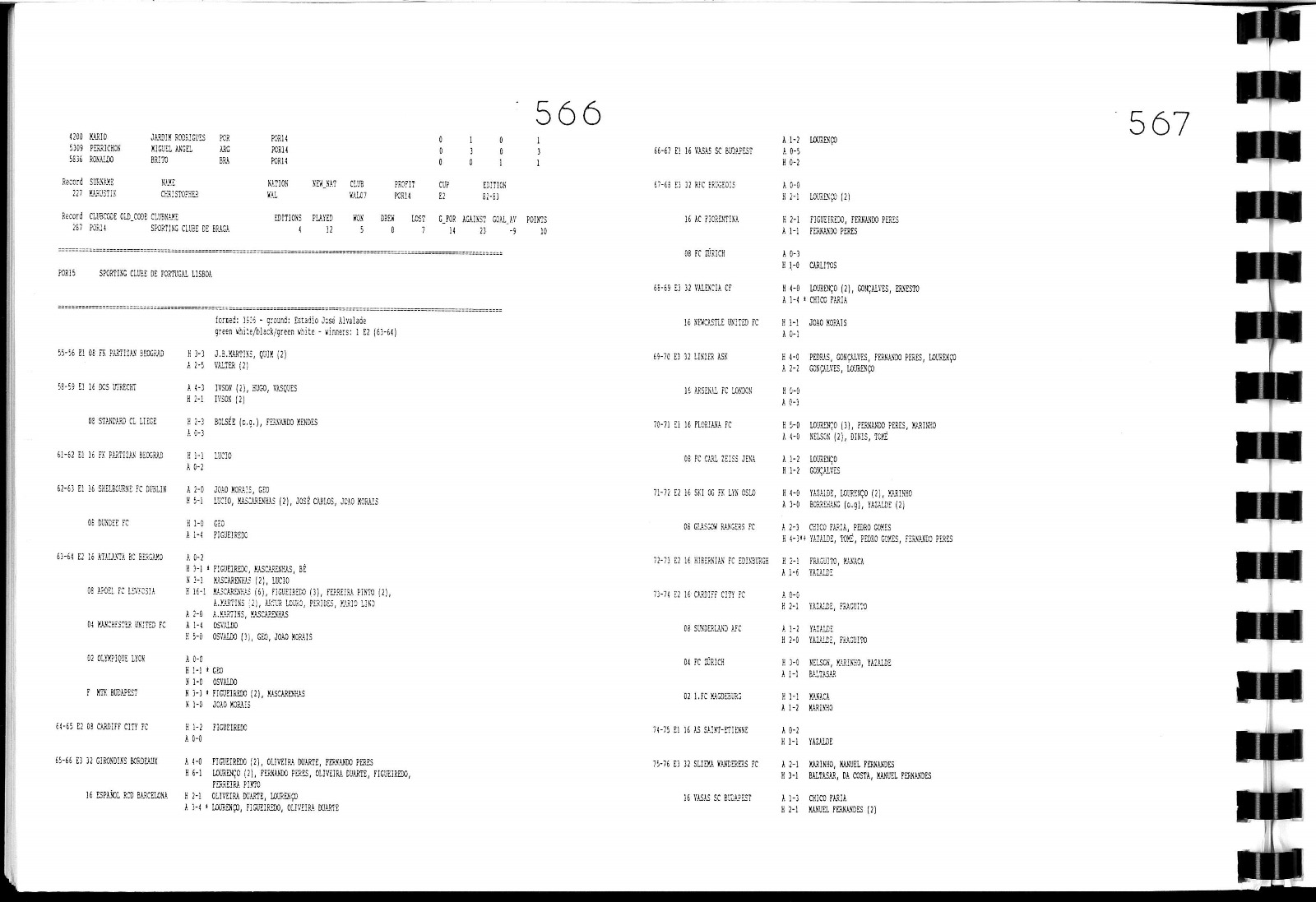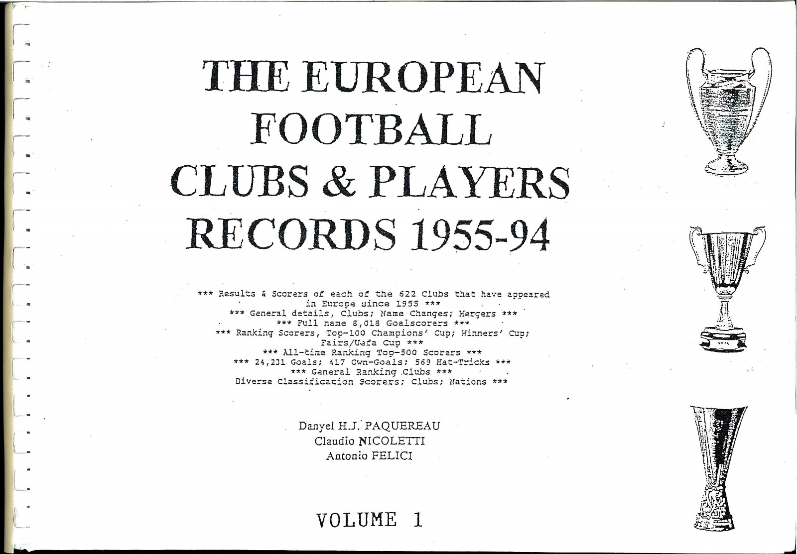 THE EUROPEAN CLUBS & PLAYERS RECORDS 1955-94 VOLUME 1