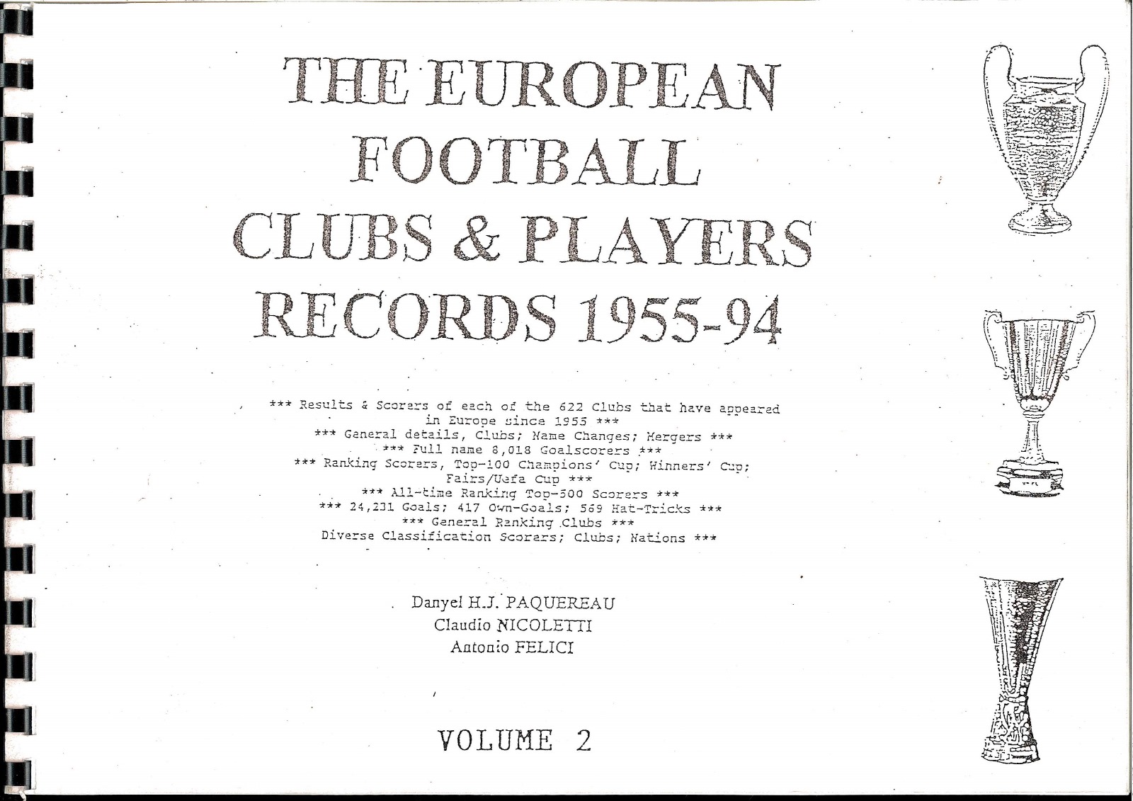 THE EUROPEAN CLUBS & PLAYERS RECORDS 1955-94 VOLUME 2