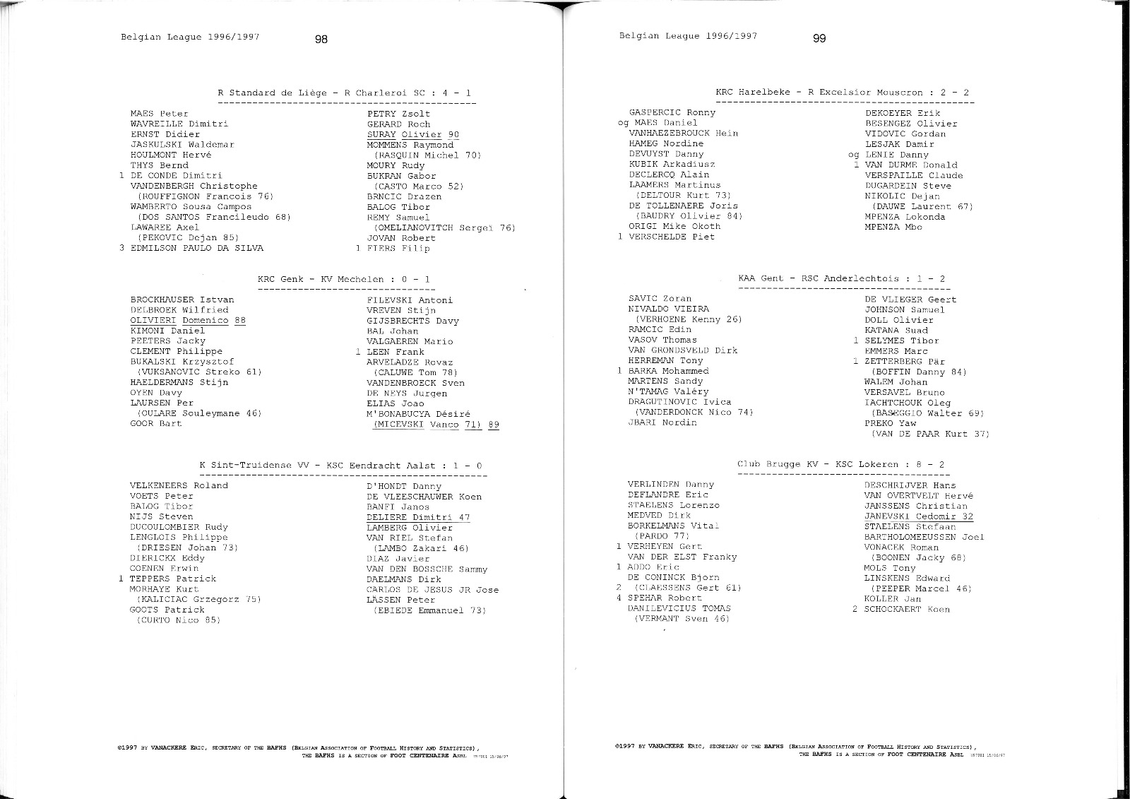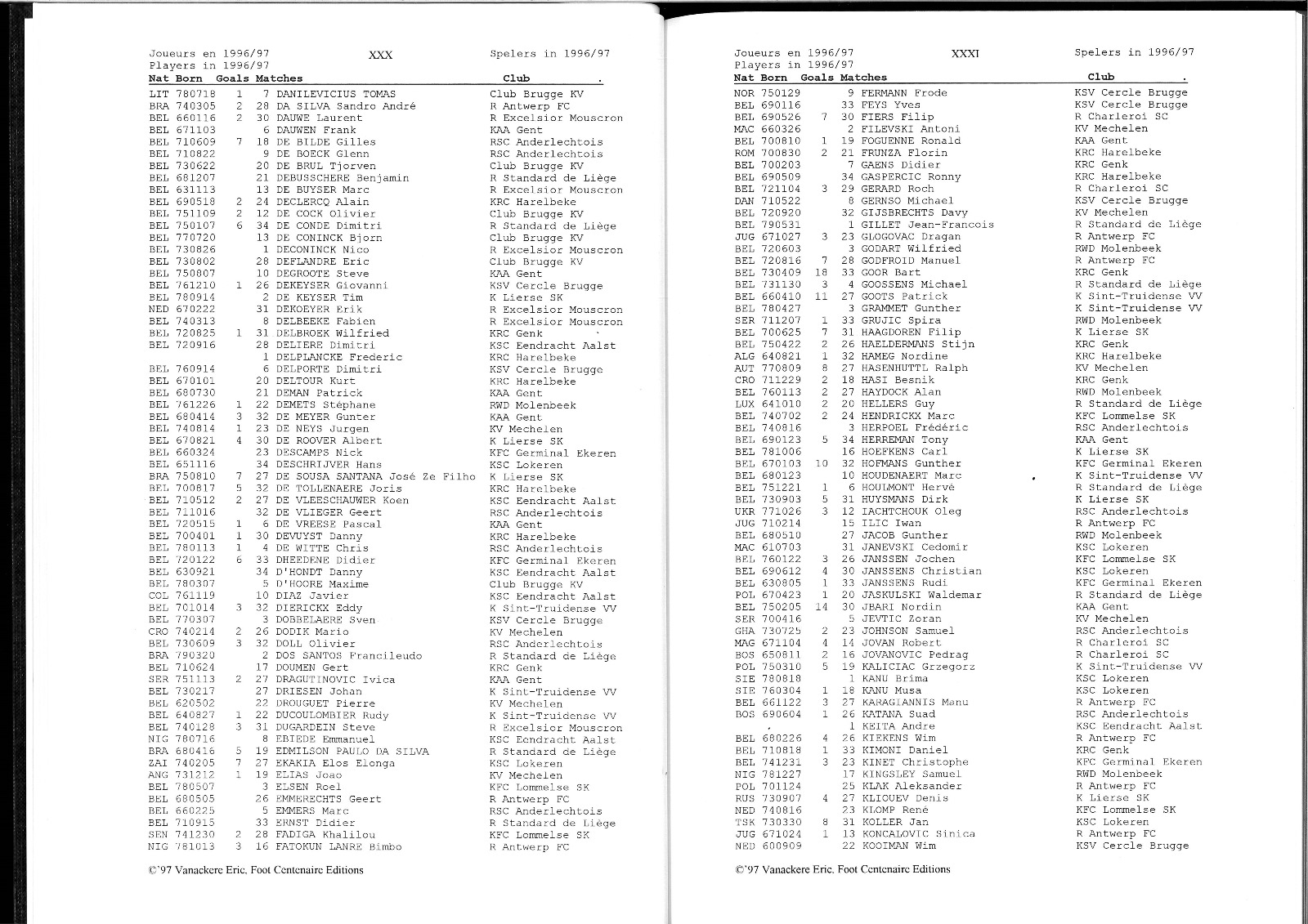 TOUT SUR LA SAISON 1996/97 DU FOOTBALL BELGE