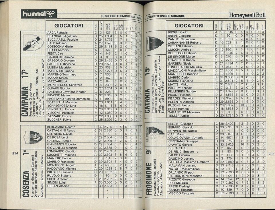 The Italian yearbook with complete match by match statistics from the Serie A to the Serie C2 and a very detailed player A-Z of over 3000 players